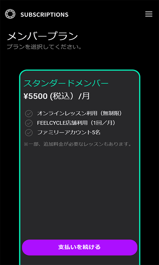 スタンダードメンバーの、「支払いを続ける」をタップします。